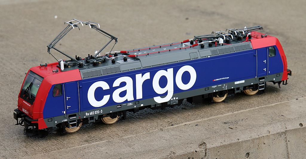 Schon ab März 2010 wird die vierachsige Ellok Re 482 in der leuchtend blauen Cargo Lackierung ausgeliefert. Das Modell im Maßstab 1:45 kommt mit ABS Kunststoffgehäuse, Rahmen und Getriebe sind aus Metall.