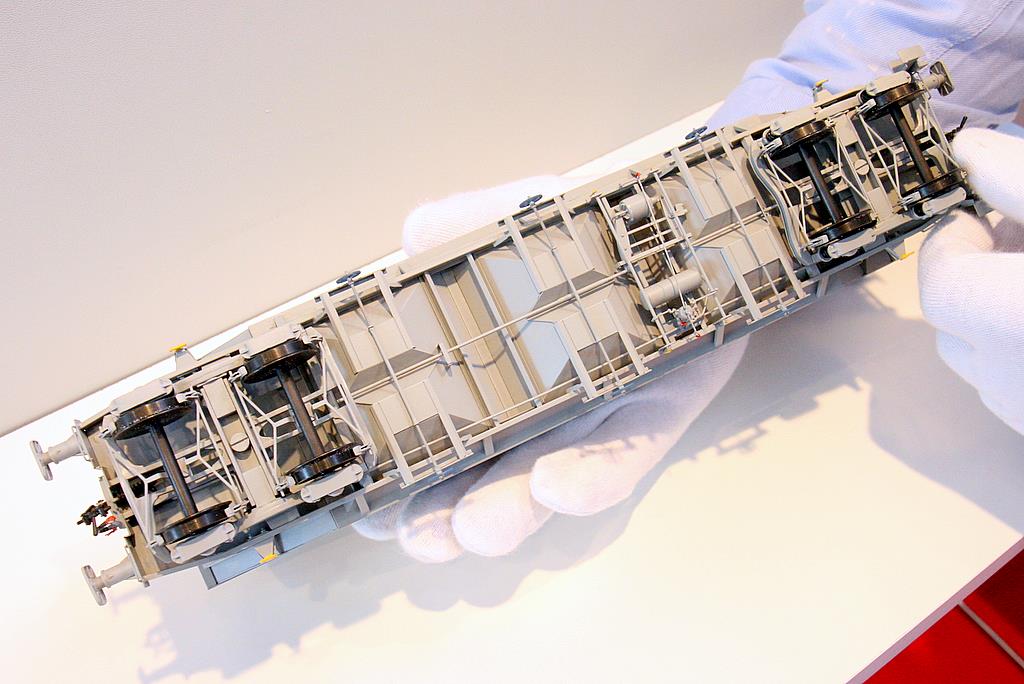 Es wird den Wagen in 10 verschiedenen Lackierungen geben, darunter auch Railion. Der vierchsige Güterwagen ist ebenfalls komplett aus Messing gebaut. Er kommt mit Y25 Drehgestellen und NEM Rädern. Der Wagen wird 400 Euro kosten und ab Oktober erhältlich sein.