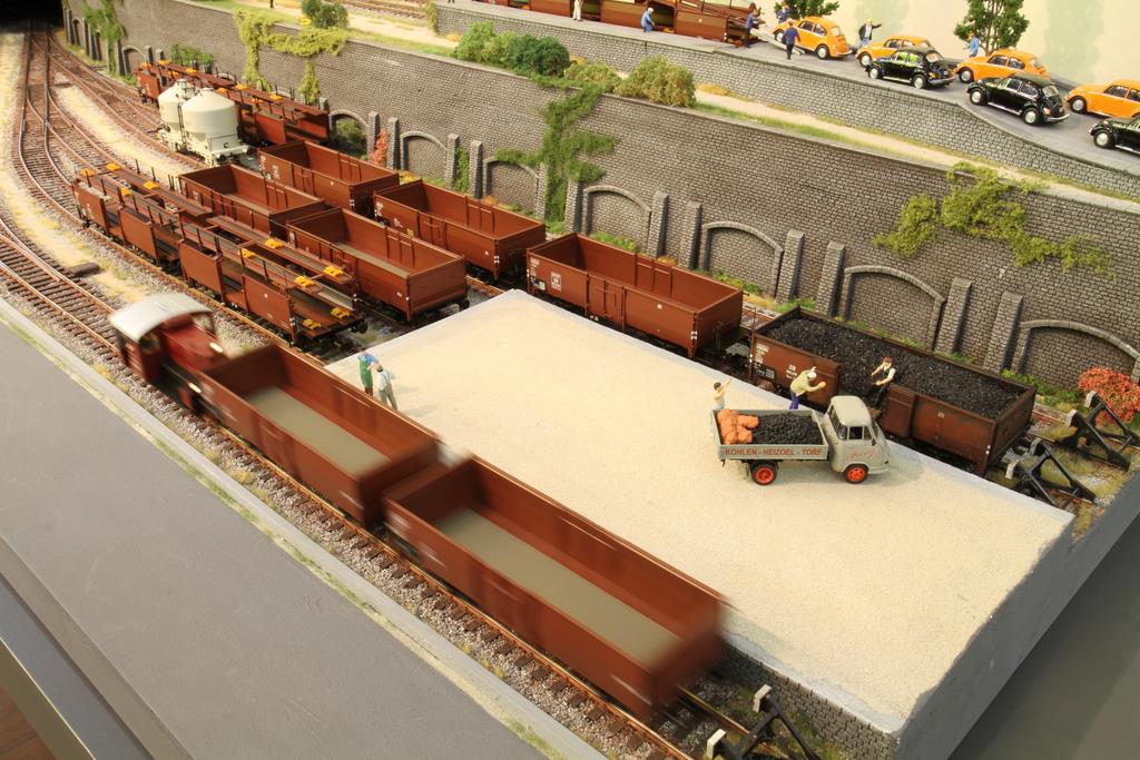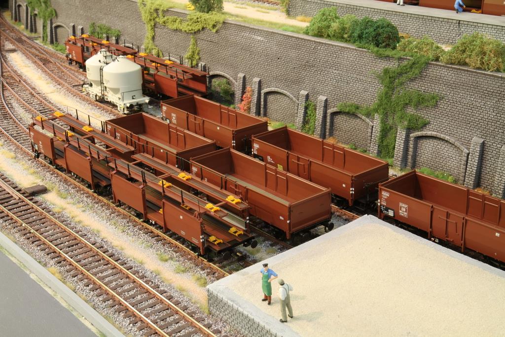 Brawa legt ein beeindruckendes Tempo vor: Viele der für 2012 angekündigten Neuheiten sind ja bereits lieferbar und waren auch alle am Stand zu sehen: Die neuen Staubgutwagen Kds54 und Kds56 in Epoche 3 und 4 Beschriftung mit Werbeaufdruck tummelten sich genauso auf dem großzügigen Spur Null Präsentationsdiorama wie die bereits erschienene Autotransporter Off52 und die offenen Omm52. Und auch die anderen Formneuheiten, der Behältertragwagen BTrhs 30 und der geschlossene Güterwagen Oppeln waren zu sehen.