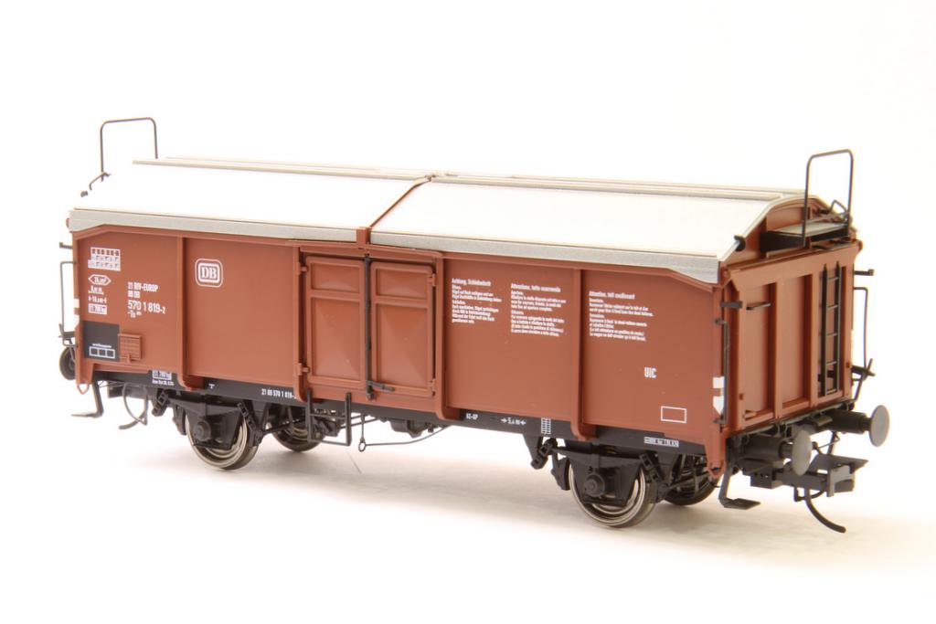 Auch der Schiebedachwagen Kmmks 51 / Ts 851 kommt bereits aus der Spritzgussform, die Messemuster sind aber noch von Hand lackiert und beschriftet. Der Zeitplan 3. Quartal für dieses Brot-und-Butter Modell, das beim Original über 4500-mal gebaut wurde, steht.