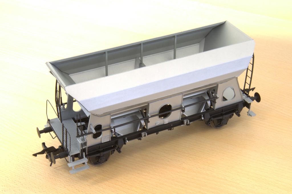 Neben den fast fertigen Modellen gab es auch Prototypen angekündigter Modelle in Nürnberg zu sehen. Der Talbot Schotterwagen kommt mit interessanten Funktionen, und auch der Selbstentladewagen Otmm 52 war als Vorab-Version in der Vitrine ausgestellt.