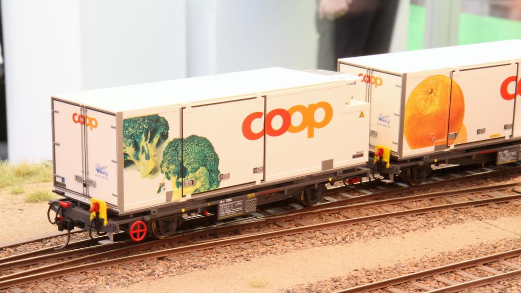 Der Schmalspurspezialist erweitert zielstrebig sein Angebot an Modellen der Spurweite 0m. Neu für die RhB ist der Containertragwagen Lb-v mit Kühlcontainer Coop und ein Postcontainer, beide waren als Prototypen auf der Messe zu sehen.