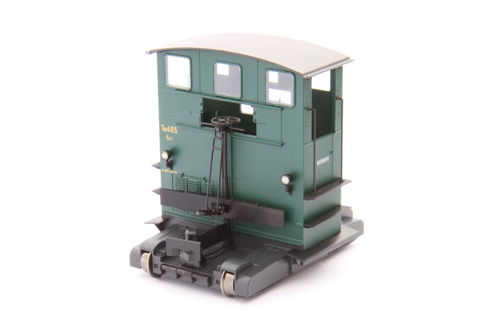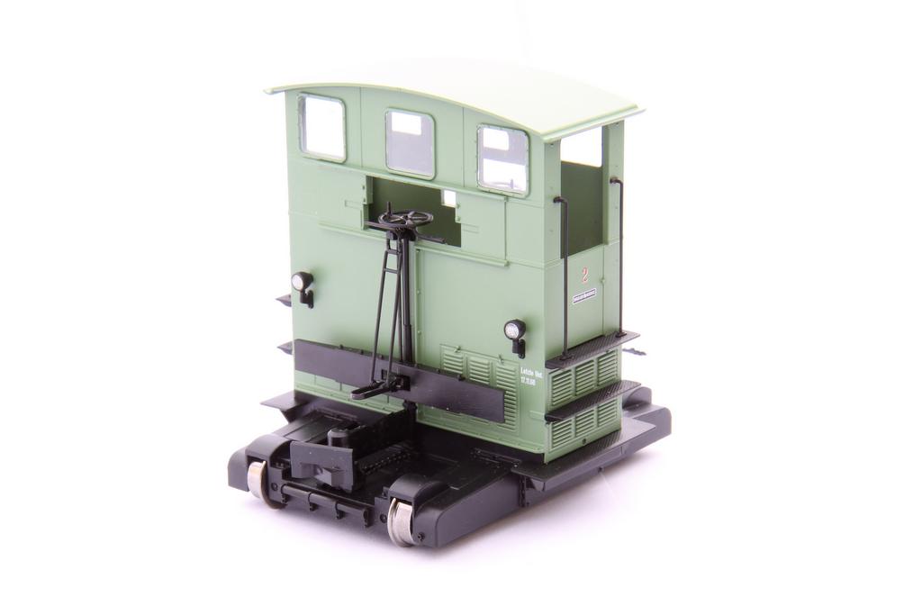 Die Fenster sind einzeln eingesetzt, und wenn man schon hineinspäht, dann erkennt man auch gleich Brems- und Gaspedal im Inneren. Das Modell kommt mit eigens angepasstem Decoder und hat beleuchtete Lampen sowie Innenbeleuchtung. Der Sound klingt trotz des kleinen Lautsprechers sehr gut; neben dem Blubbern des kleinen Dieselmotors gibt es Bremsgeräusche, das Rasseln des Kettenantriebes, Türöffnen, und anderes. Die UVP ist 349.- Euro