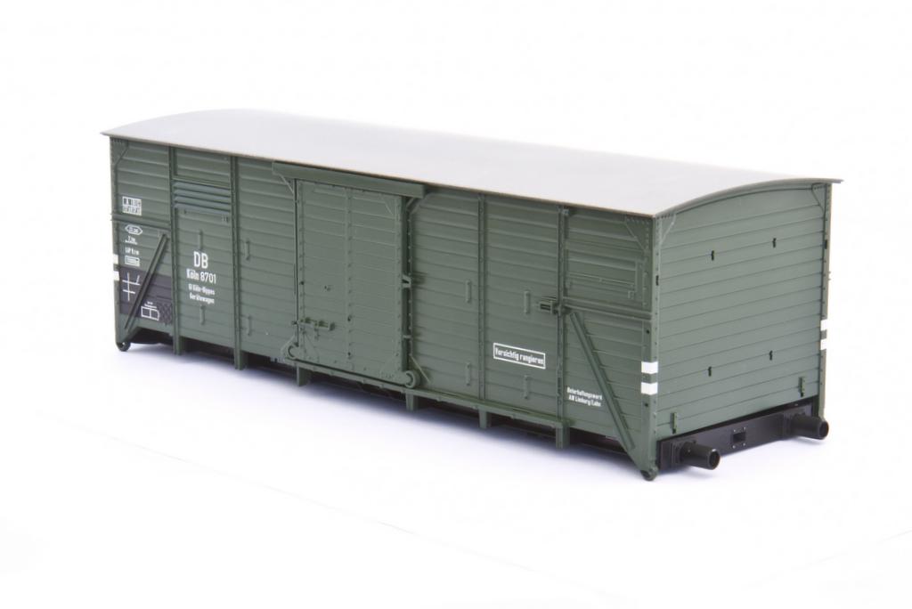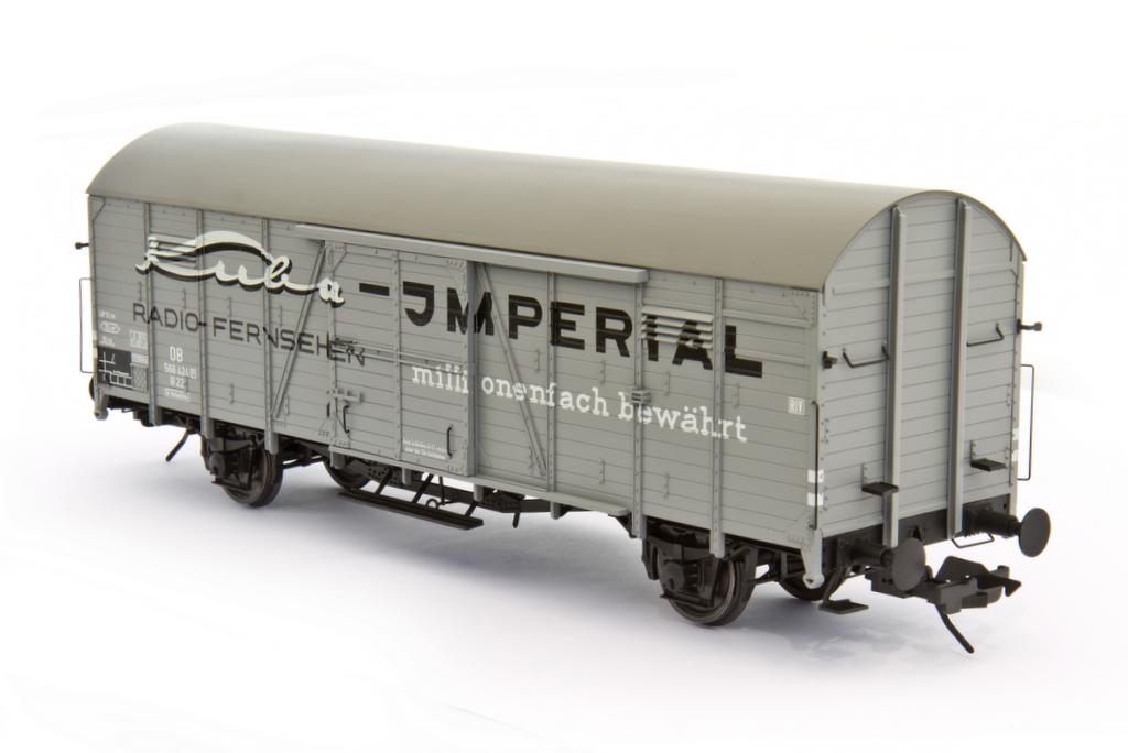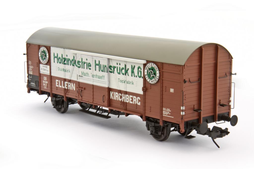 Der gedeckte Güterwagen G 10 wird als grüner Gerätewagen aufgelegt, und erhält vier historisch verbürgte Werbelackierungen. Die gedeckten Güterwagen Gl22 „Dresden“ werden in einer grauen „Kuba-Imperial“ Version und mit Werbelackierung „Holzindustrie Hunsrück“ bereits dieser Tage ausgeliefert.