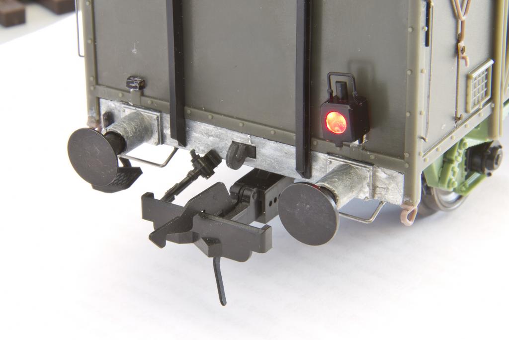 Eine weitere Neuheit: Von allen Wagen wird es eine Version mit beleuchteter Zugschlusslaterne geben. Die wird digital schaltbar sein, der Wagen mit Stromabnahme und Energiespeicher ausgestattet sein. Die Wagen ohne Beleuchtung werden 125,- Euro kosten, die Preise für die Schlusslicht-Version stehen noch nicht fest.