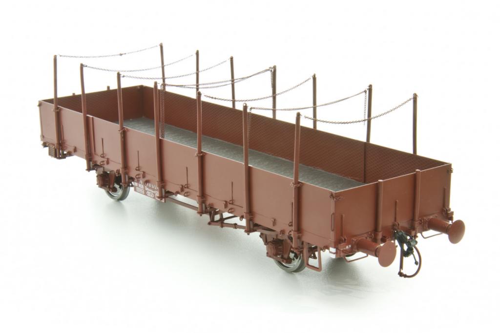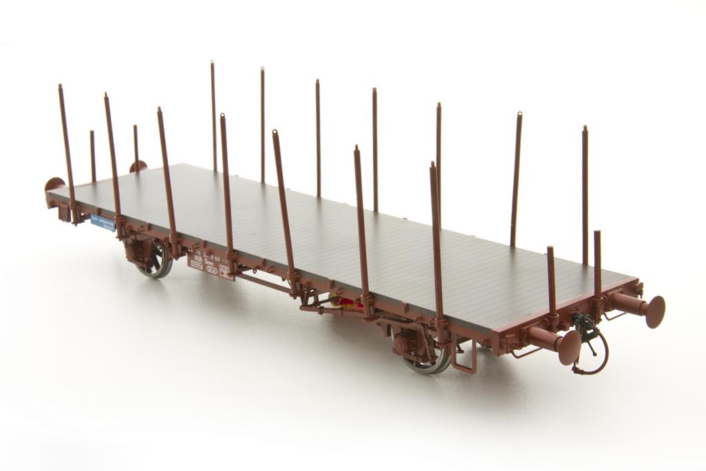 Der Rungenwagen T3 oder Tl3 mit Seitenwand kommt genauso wie der etwas längere T4 mit feinsten Miniaturketten. Wer (ganz) genau hinsieht, der erkennt an der Innenseite die feine Riffelung der Bordwand. Hier gibt es vier Varianten. Die Modelle sollen Mitte des Jahres lieferbar sein.
