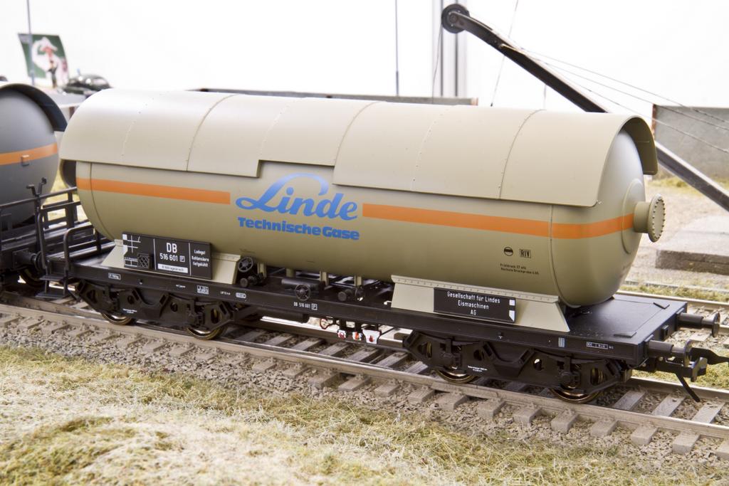 Auf der Intermodellbau 2015 waren die ersten Prototypen des neuen Gaskesselwagens zu sehen. Die Bedruckung ist in Sachen Farbgebung und Platzierung noch nicht ganz korrekt. Das Sonnendach soll vorbildentsprechend mit kürzeren Mittelstück als Aussparung für das Firmenlogo erscheinen, bei manchen Firmenbeschriftungen wird das Sonnendach ohne diese Aussparung umgesetzt.