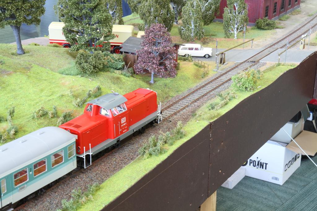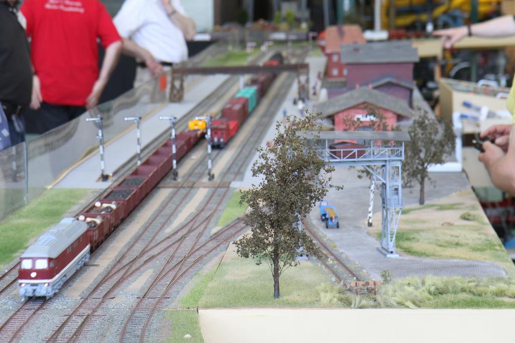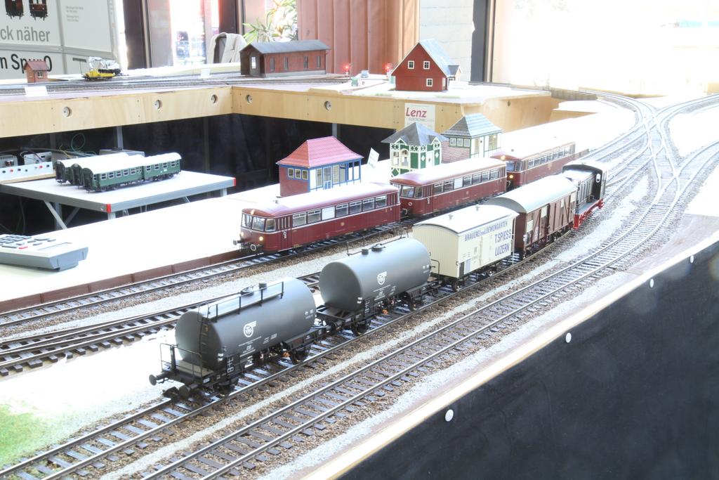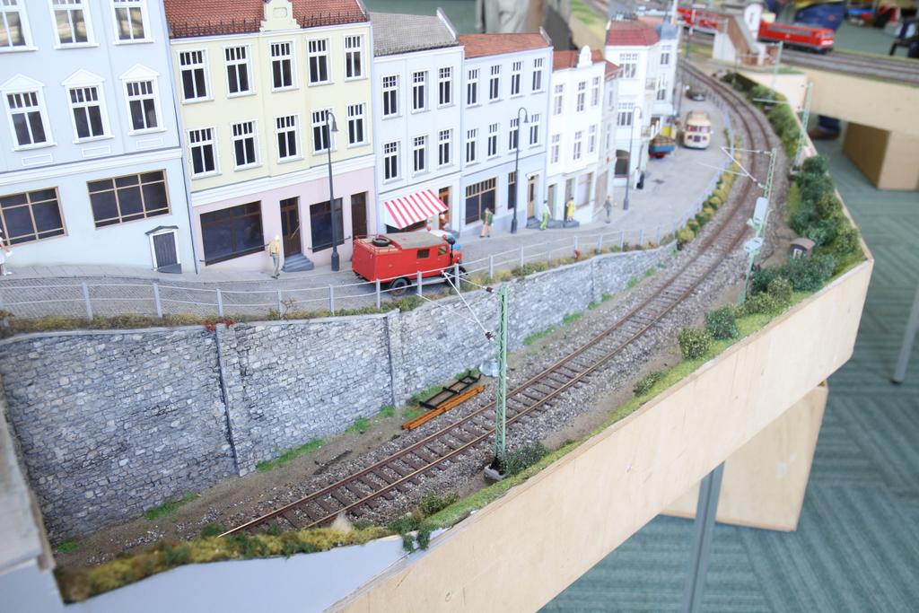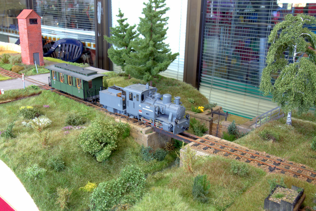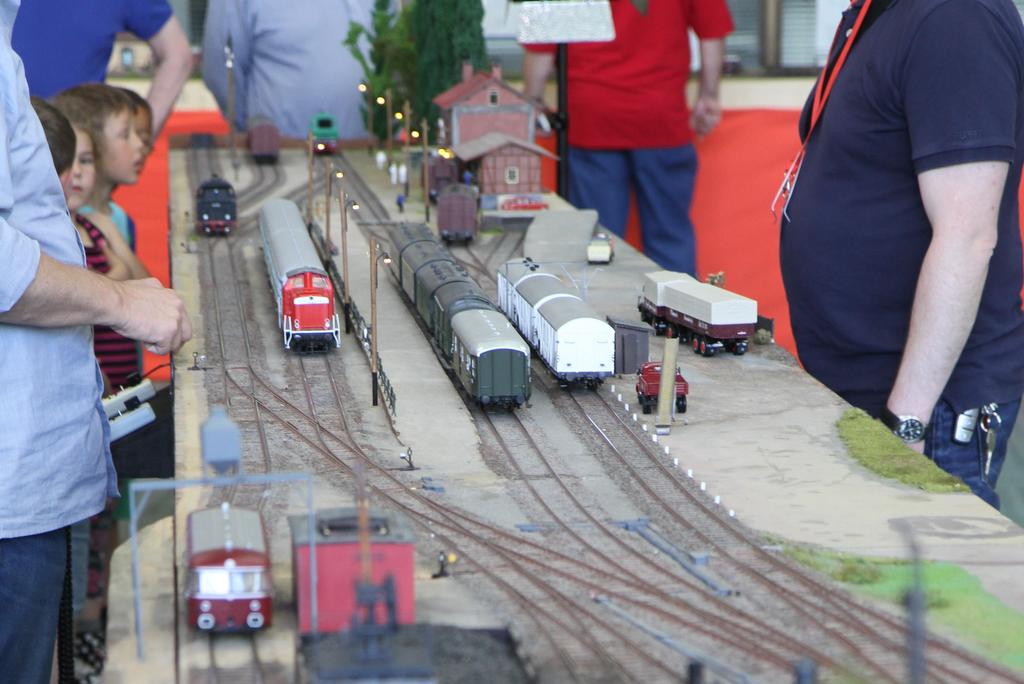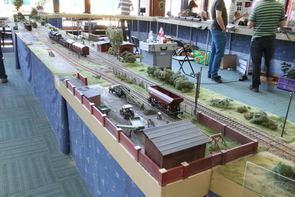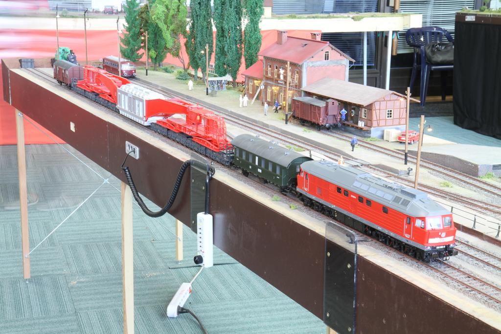 Auf der die Modellbahnausstellung der Eisenbahnfreunde Bad Oldesloe ist auch ein großes Spur Null Arrangement aus Modulen der Hamburger Spur 0 Modulgruppe zu sehen: Ein doppelgleis