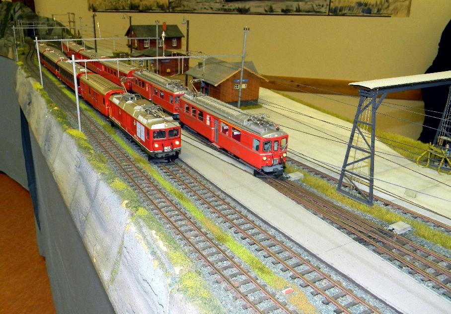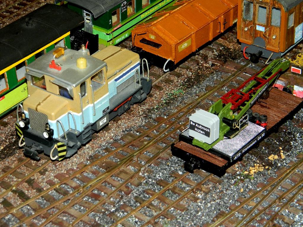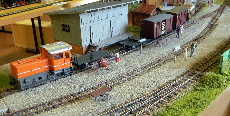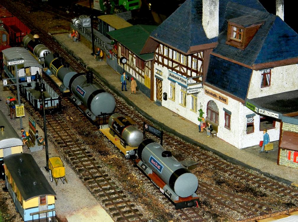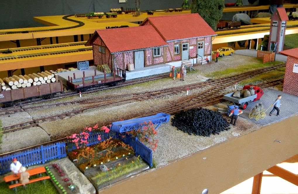 Weitere Anlagen bzw. Module kamen von Hans Feldmeier, sein Bahnhof Aubrook ist Teil einer entstehenden Heim-Anlage und schnupperte erstmals Ausstellungsluft. Wilfried Lange hatte einen Teil seiner Heimanlage mitgebracht, hier fanden Rangierwettbewerbe statt, festgehalten und gemessen mit Zählwerk.