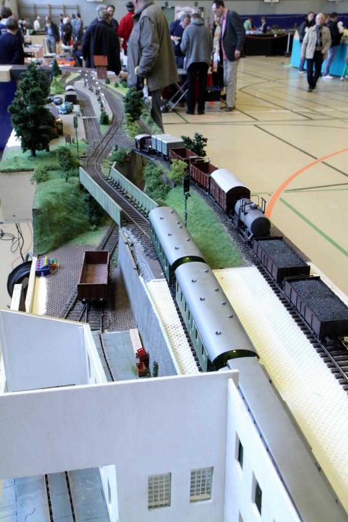 Man muss ein paar Stationen mit der S-Bahn fahren (Station Nettelnburg) oder einige Kilometer mit dem Auto: Die Gewerbeschule Bergedorf, in der die Veranstaltung stattfand, liegt nicht zentral in Hamburg, sondern im südlichen Stadtteil Bergedorf. In mehreren Turnhallen waren 12 Modelleisenbahnanlagen von Spur Z bis Spur G aufgebaut, und einige Gebrauchthändler boten ihre Waren feil. Überaus bemerkenswert ist, dass nicht weniger als drei Modellbahnanlagen in Spur Null dabei waren, ein Viertel aller ausgestellten Anlagen!