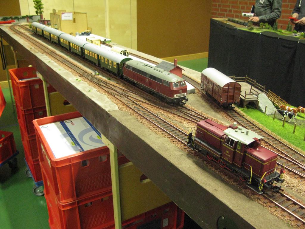 Drei Arrangements sind aufgebaut: Die traditionelle Spur N, die Keimzelle des Clubs, dazu das rasch wachsende Spur Null Modularrangement und auch eine H0 Anlage eines Gastvereins. Für die Kids ist auch eine kleine Rangier- und Spielanlage aufgebaut.