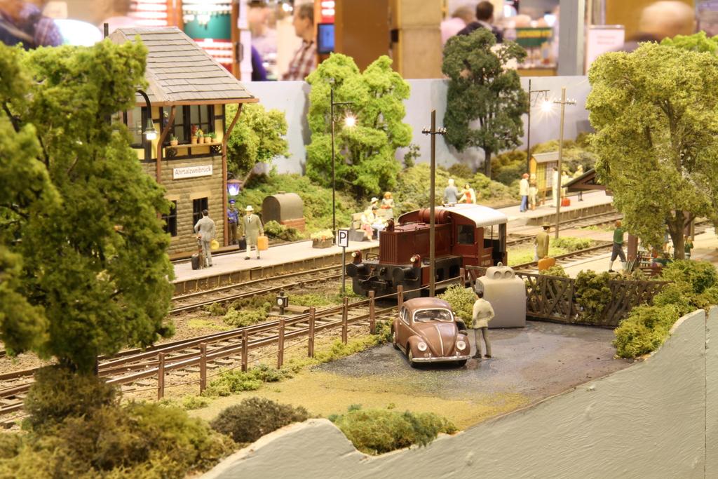 Neben vielen Anlagen nach britischen Motiven sieht man auch solche mit deutschem und amerikanischem Thema. Das modellbauerische Niveau ist durchweg sehr hoch, die Ausstellungsanlagen bieten eine Fülle von Details und Anregungen auch für Modellbauer, die nach deutschen Motiven bauen. Und wer einkaufen will, der bekommt eine riesige Auswahl an Kleinteilen und Zubehör, die auch „auf dem Kontinent“ verwendbar sind. Vor allem in Sachen Figuren ist das Angebot riesig.