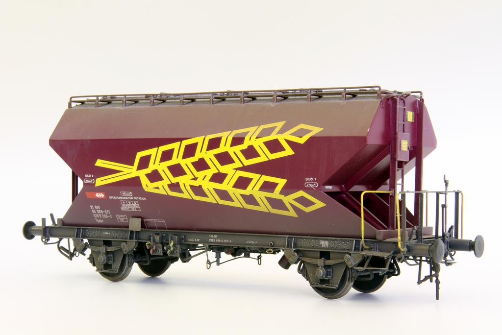 Nur eines von vielen beeindruckenden Modellen von Fredi Gautschi: Der Getreide-Silowagen ist in sieben komplett unterschiedlichen Lackierungen und auch in Wunschlackierung zu haben. Zusätzlich können die Wagen herstellerseitig in drei Alterungsstufen geliefert werden. Preise starten bei 1580,- SFr. für das hochdetaillierte Modell aus der Schweiz. Leider gibt es keine Webseite, die bisher erschienenen Modelle werden in einem späteren Beitrag vorgestellt werden.