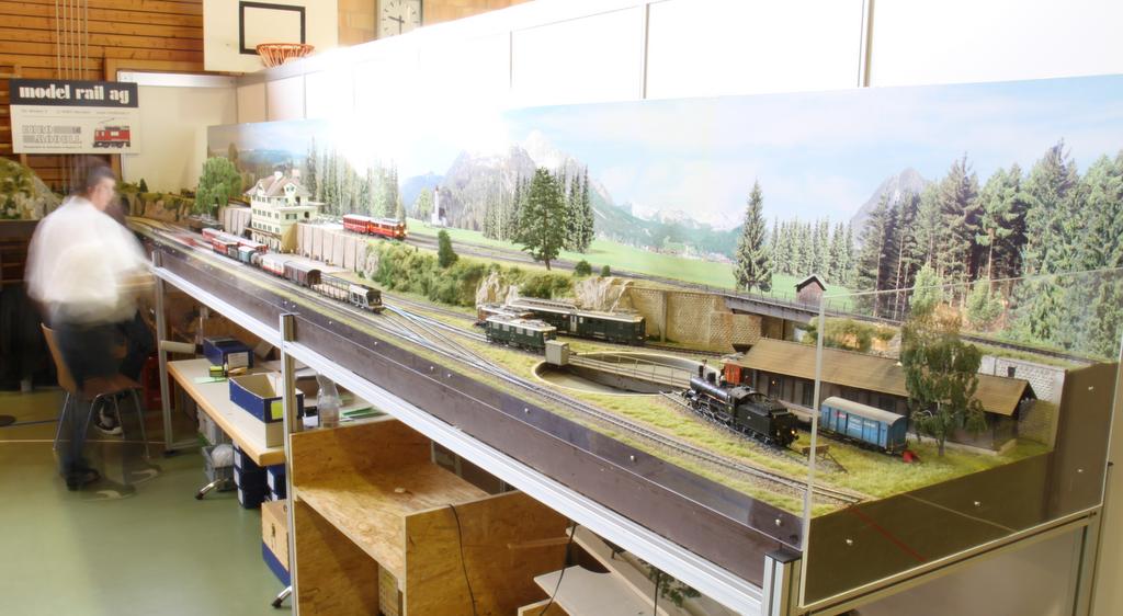 Die komplette Modellpalette von Modelrail war samt Ausstellungsanlage zu sehen. Die Liechtensteiner fertigen Schmalspur Modelle für die Rhätische Bahn (RhB) und die Furka-Oberalp-Bahn (FO).