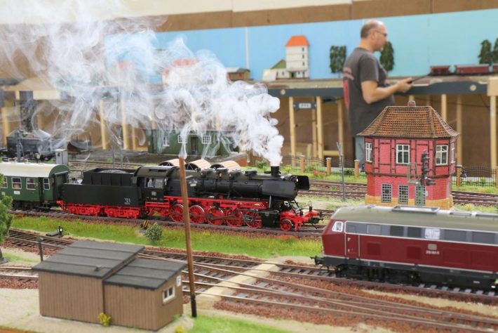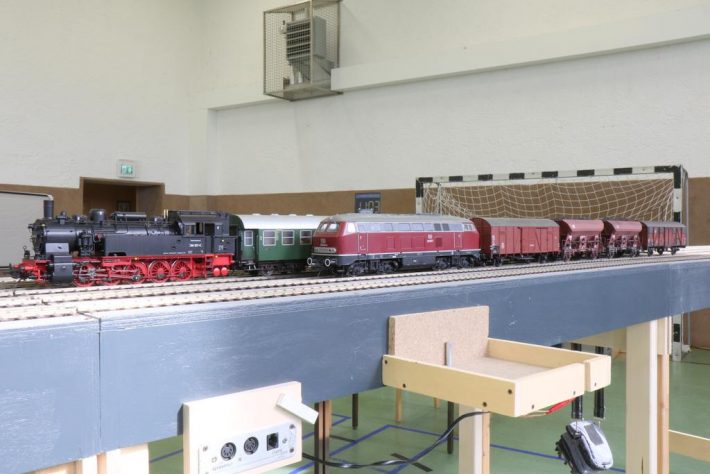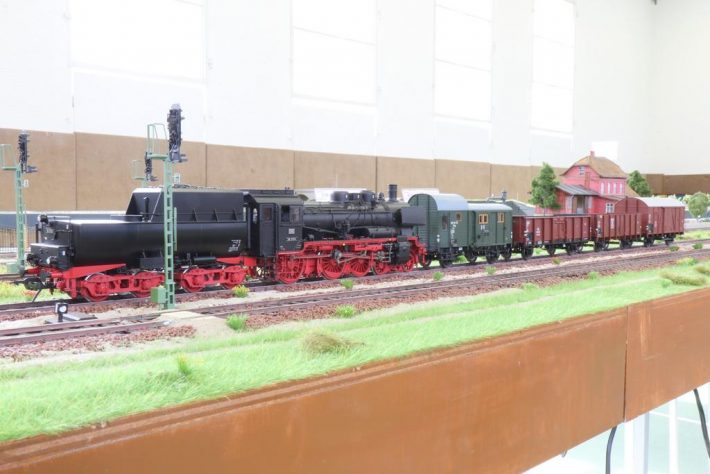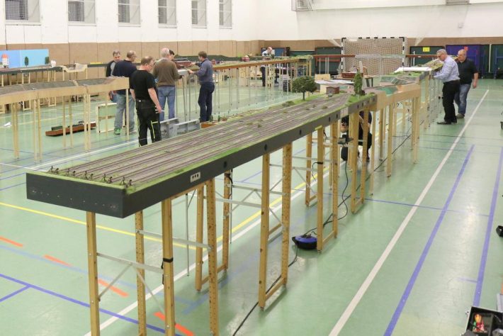 Der Fahrbetrieb verlief erwartungsgemäß sehr gut und bis auf ein paar kleinere Ausfälle völlig reibungslos. Ohne den Druck eines Fahrplanes wurden Güterzüge zusammengestellt und in dem über 70 m langen Modul-Arrangement auf die Reise geschickt. Sie pendelten zwischen den sechs Betriebsstellen hin und her, um den Güterverkehr zu bewältigen. Außerdem fuhren noch zwei Personenzüge diese Strecke, um den Personenverkehr abzuwickeln.