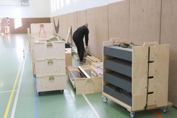 Entladen und Aufbau gingen zügig von statten, so dass am späten Abend schon erste Probefahrten erfolgten. Für die Steuerung kam die schwarze Z21 Digitalzentrale von Roco zum Einsatz. Diese wurde mit dem XpressNet und zwei W-Lan Routern verbunden. Ein Router war nur für die Roco Funk Mäuse und ein anderer für die Handy Steuerung gedacht, was für eine zuverlässige Funktion der Technik sorgte. Auf das XpressNet wollten wir wegen der guten Erfahrungen mit den neuen Lenz LH 101 Handreglern nicht verzichten.