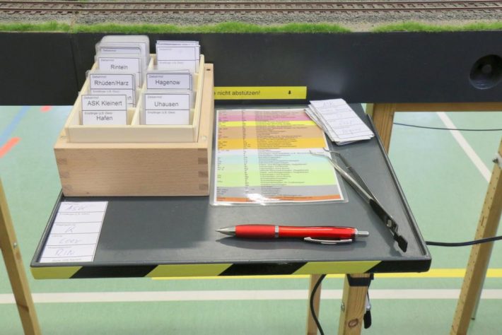 Obwohl Gäste grundsätzlich willkommen sind, wollten wir dieses Mal ganz unter uns bleiben. Unsere Absicht war ein sinniger Spielbetrieb, der aber etwas lockerer ablaufen sollte. Das bedeutete zielgerichteter Transport von Gütern mit Frachtkarten zu den einzelnen Betriebsstellen, aber ohne den von einem Fahrplan vorgegebenen getakteten Dienst – einfach nur mal wieder gemeinsam viel Spaß haben.