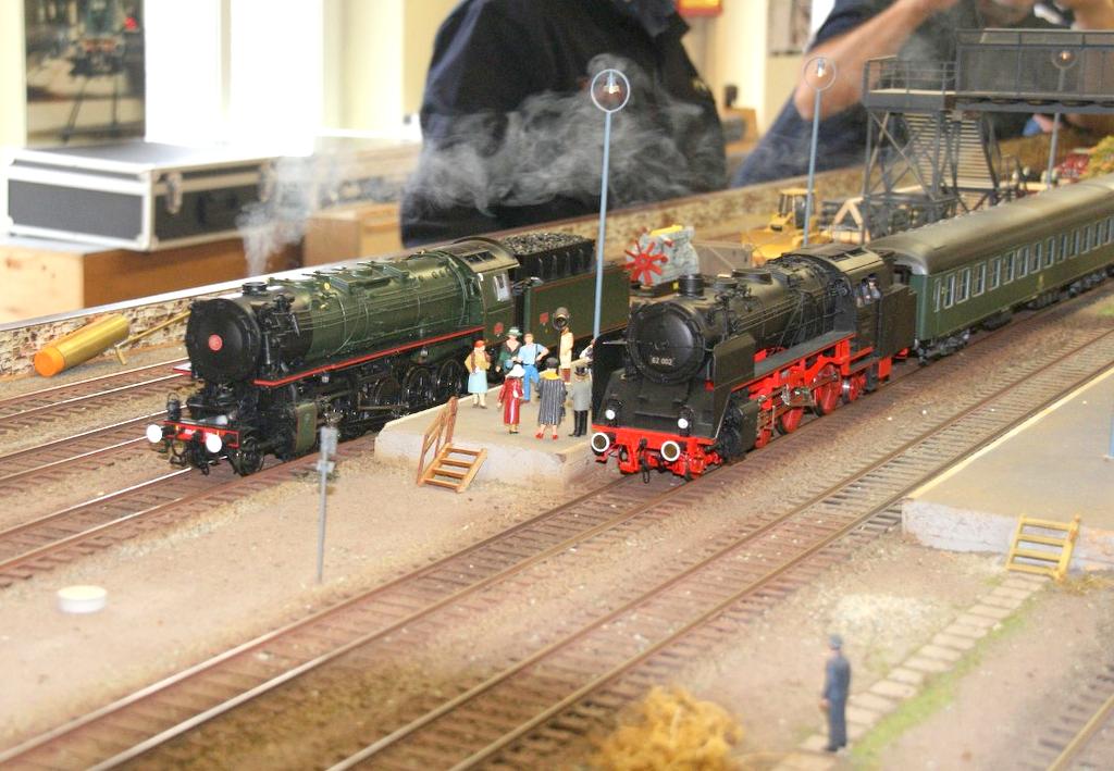 Abwechslungsreiche Zuggarnituren, eine französische 44er der SNCF, Ludmilla, NOHAB, diverse Triebwagen, 64er, 86er und vieles mehr bevölkerte die Gleise und brachte die Aufnahmekapazität der Bahnhöfe bald an ihre Grenze. Der Betrieb lief zu 99,9 % störungsfrei, egal ob digital oder analog. Für Verpflegung war auch gesorgt, so dass auch das leibliche Wohl nicht zu kurz kam.