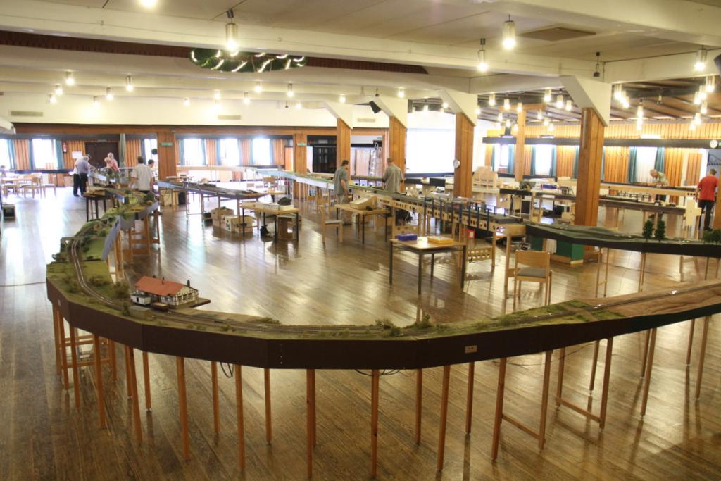 Im Juni trafen sich (wieder mal) knapp zwei Dutzend Spur Null Freunde zum gemeinsamen Spieltreff. Etwa 100 Meter Module kamen zusammen, eine Hauptstrecke mit zwei Nebenstrecken wurden aufgebaut.