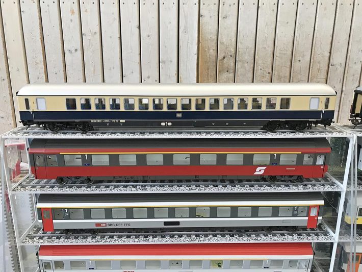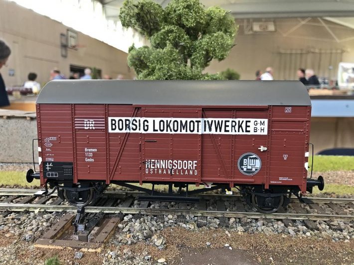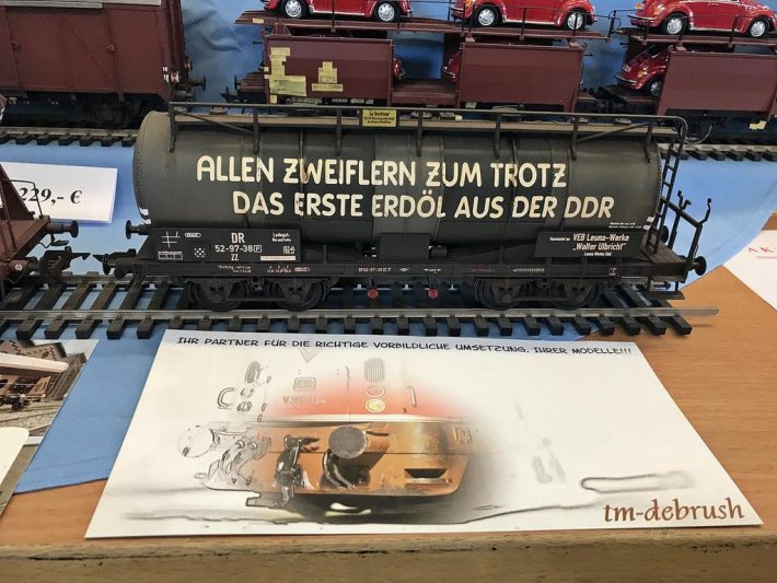 Der Veranstalter Gruber-Events hatte, wie schon in den vergangenen Jahren, einige Sondermodelle im Angebot, die in kleiner Stückzahl aufgelegt wurden. Als Beispiele seien hier die Kesselwagen der „Moha Frankfurt“, „Dujardin“, sowie „Standard Esso“ genannt, oder auch, die auf BRAWA Oppeln-Basis entstandenen „Krauss-Maffei München“- oder „Borsig-Lokomotivwerke“-Wagen. Basierend auf dem Moog Xr35-Bausatz wurden weitere Farb- und Beschriftungsvarianten angeboten. Ein MTH-Taurus in Oceanblau-Beiger-Lackierung rundete die Auswahl ab. In Zusammenarbeit mit der Fa. Zapf entstand eine exklusive, große Holzkiste mit „Krauss-Maffei“-Beschriftung.