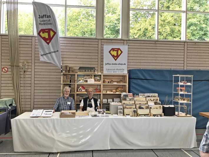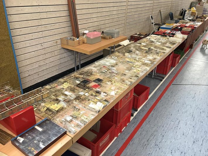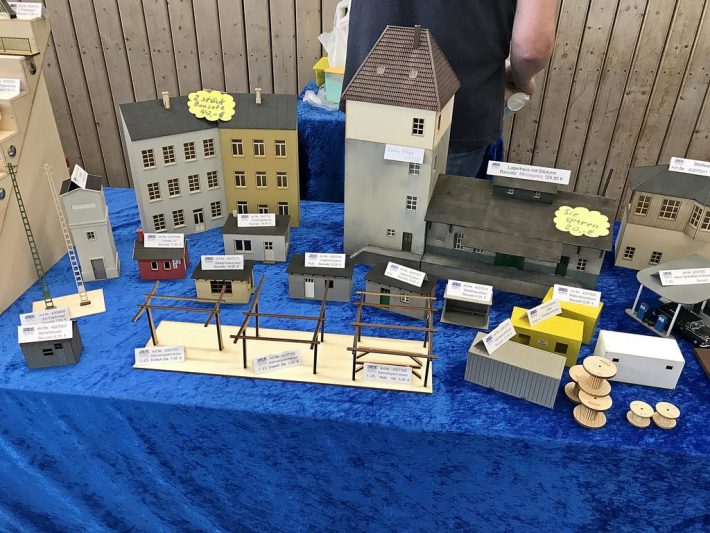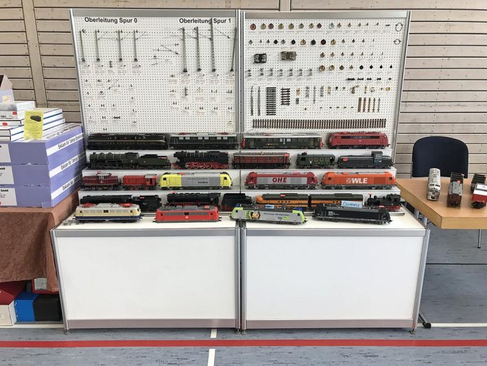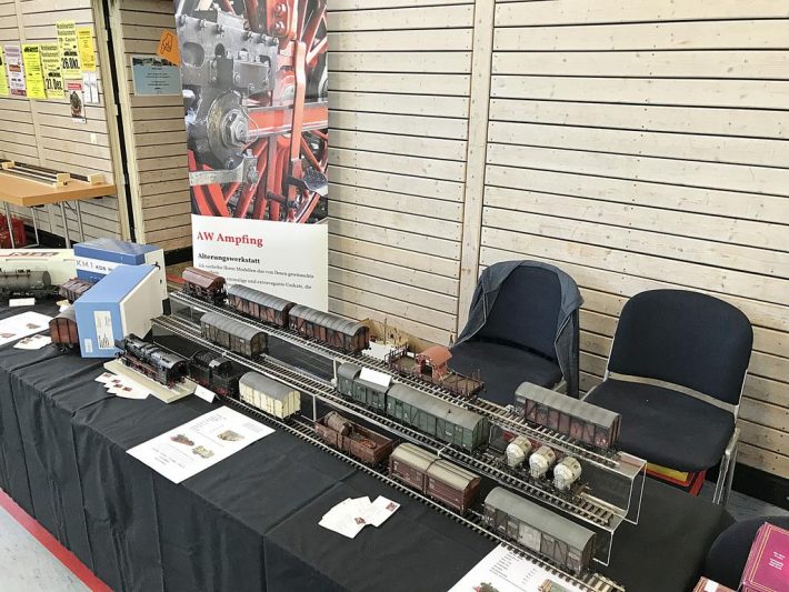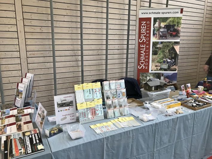 Neben vielen Gebrauchtwarenangeboten aller Spurweiten waren auch reichlich Dienstleister, Hersteller und Händler anwesend. Von A wie Addie bis Z wie Zapf war ein attraktives Sortiment und eine gute Auswahl vorzufinden, wie auch auf den Bildern zu sehen ist. Diverses Rollmaterial, Zurüstteile, Lasercut, 3D-Druck, Gebäude, Bäume und Sträucher, Beschriftungen und Patinierung waren im Angebot, kaum ein Wunsch blieb unerfüllt. Auch ein kleiner Info-Stand der ARGE Spur 0 war vor Ort.