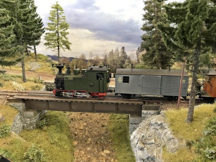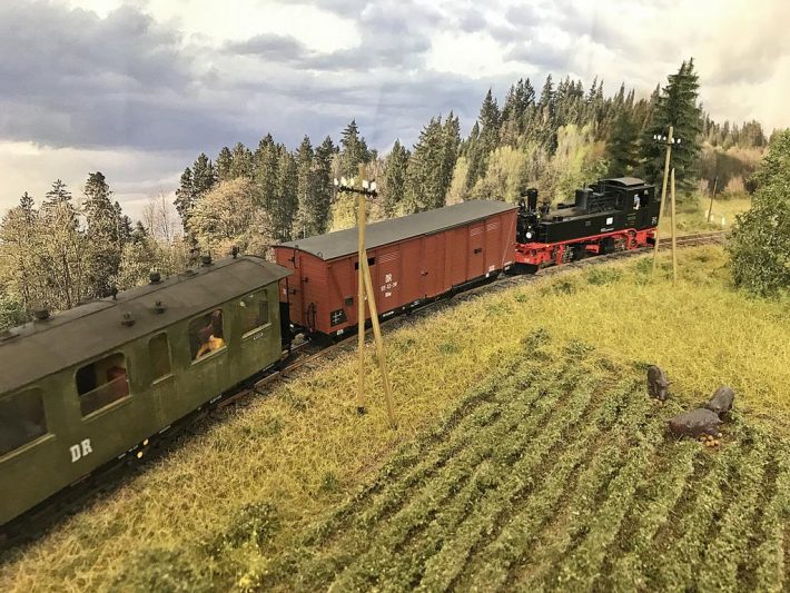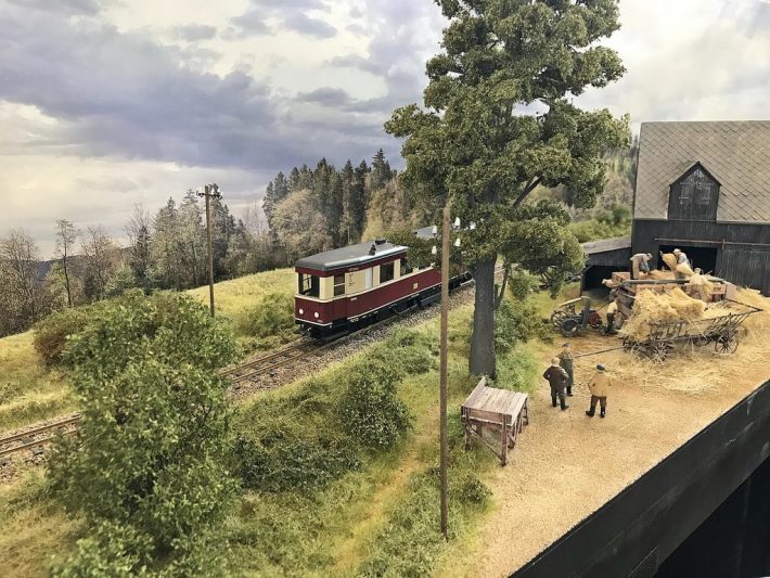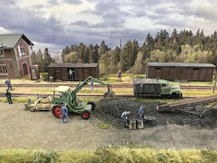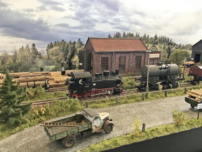 Eine weitere, außerordentlich sehenswerte Modul-Anlage steuerten die Westsächsischen 0e-Freunde bei. Teile dieser Anlage waren schon im Jahr 2017 zu bestaunen, diesmal ergänzt um neue Module. Durch einen leicht modifizierten Aufbau ergaben sich wieder viele neue Blickwinkel und Eindrücke. Auch dieses Arrangement überzeugte besonders durch seine detaillierte Ausgestaltung und sehr realitätsnahe Umsetzung.