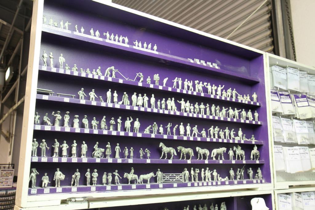 Auch wenn die Eisenbahn auf den britischen Inseln so ganz anders aussieht als auf dem Kontinent, gibt es doch eine Menge auch für einen kleinen Einkauf zu entdecken, das auch auf deutsche Anlagen passt. Ganz vorn stehen da die Figuren: Es gibt eine große Zahl von Figurenherstellern, die ihre Miniaturen aus Weißmetall gießen. Sie werden dann meist zum selbstbemalen angeboten und kosten zwischen 2 und 3,50 Pfund, was man beim gegenwärtigen Kurs fast 1:1 umrechnen kann. Die Auswahl ist riesig, und so bekommt man sehr individuelle Szenen zu sehen, die sich nicht – wie hierzulande – mit einem Blick dem Sortiment eines großen Herstellers zuordnen lassen. Auch die Freunde von Epoche 1 und 2 finden eine schöne Auswahl.