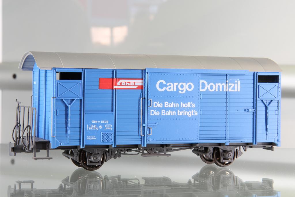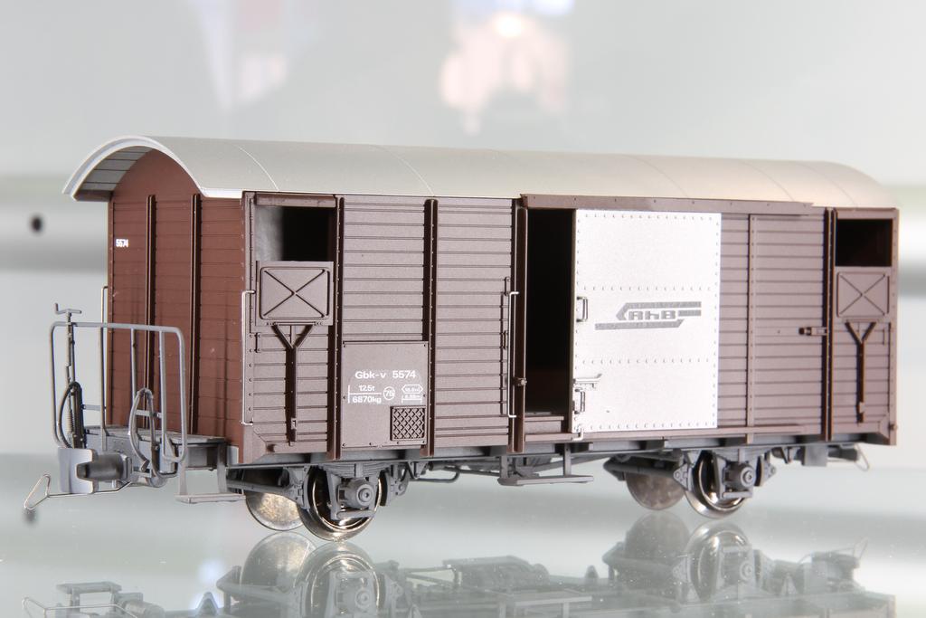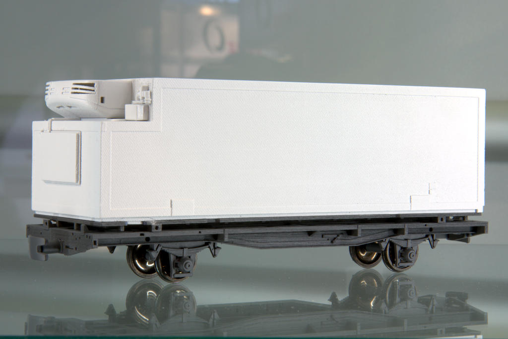 Bemo zeigte den aktuellen Stand in Sachen gedeckter Güterwagen Gbk-v. Die Vorserienmodelle kommen bereits aus der Form, die Beschriftung ist noch nicht endgültig. Die Wagen sollen ab August im Handel sein. Ein frühes 3D Modell des Containerwagens war ebenfalls zu sehen.