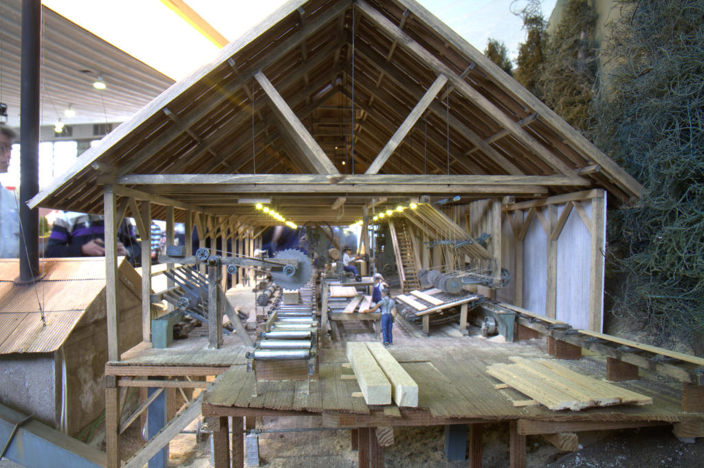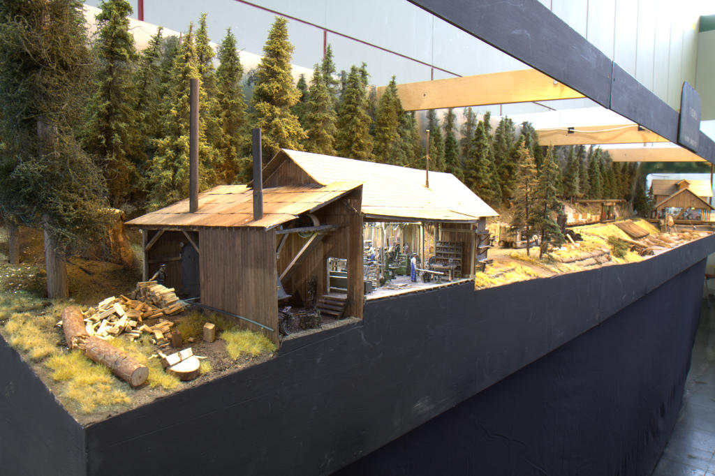 Die faszinierende Anlage von Jacq Damen spielt etwa um 1905, als in USA die Holzindustrie begann, große Mammutbäume mit über 100 Metern Höhe abzuholzen. Heute als ökologischer Wahnsinn erkannt, was das damals gängige Praxis. Und ein Knochenjob mit hohem Unfallrisiko. Die Anlage zeigt das „Logging“, also Abfahren der Baumstämme mit Shay-Lokomotiven, die Verladung zum Flößen und das Zersägen. Aufwendige Recherchen in alten Archiven waren nötig, um das Wissen für den detailgetreuen Nachbau zusammen.