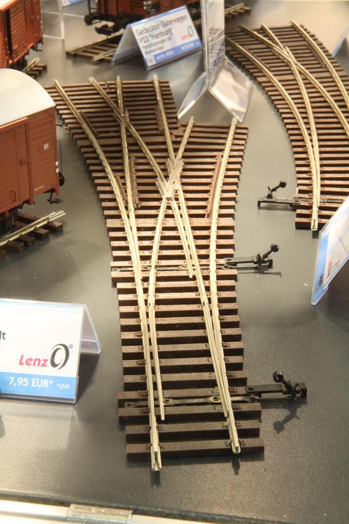 Gar nicht im Schatten, sondern gut beleuchtet die Doppelweiche, oft auch Dreiwegeweiche genannt. Sieht ebenfalls produktionsfertig aus.