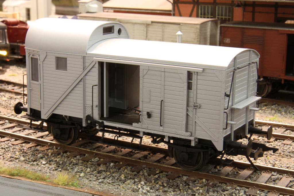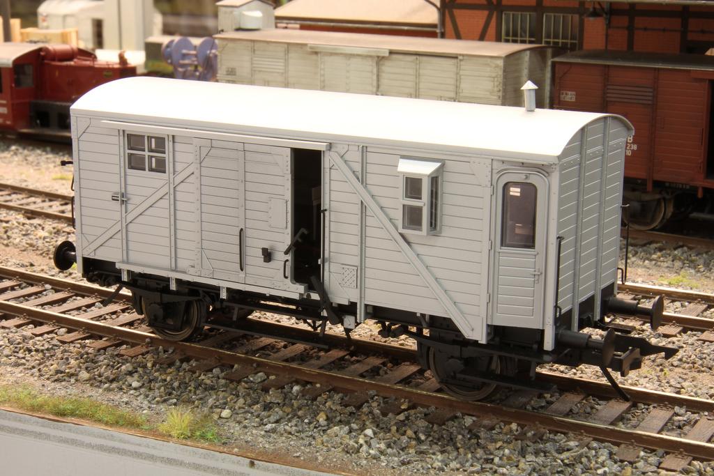 Eine schöne Überraschung waren die Güterzugpackwagen Pwg pr 14. Alle drei geplanten Versionen waren in weit fortgeschrittenem Entwicklungsstand zu sehen: Beide sich sehr ähnlich sehenden Modelle mit Dachkanzel, eines mit Seitenverstrebung, eins ohne, sowie mit und ohne Fenster in der Seitentür. Die dritte Version ohne Dachkanzel hat die typischen Seitenerker zur Zugbeobachtung.