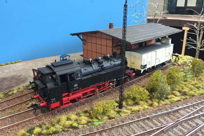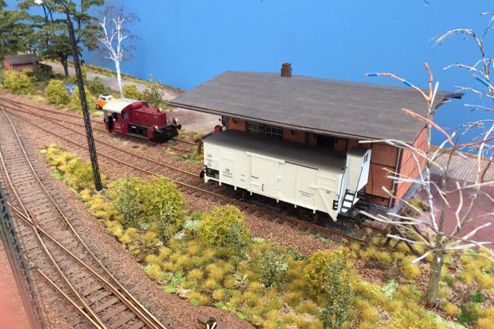 Mit von der Partie war auch Christian Sube, der auf 130 Zentimetern Gleishöhe seine Anlage vorführte. Dort führte die Strecke von einem Fiddleyard in einen ländlichen Endbahnhof.