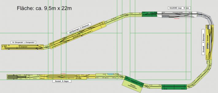 Der N-Bahnerkreis zeigte zusammen mit befreundeten Spur Nullern eine ca. 9,5 mal 22 Meter große Anlage im Punkt-zu-Punkt Verkehr. Sechs Betriebsstellen waren an der eingleisigen Strecke zu platziert, an denen Züge gekreuzt werden konnten. Auch längere Güterzüge waren unterwegs: Ein Hingucker für die vielen Zuschauer waren die Rübenzüge hinter einer dampfenden BR 50 von Lenz; wenn der Zug fuhr, bildeten sich regelrecht Menschentrauben.