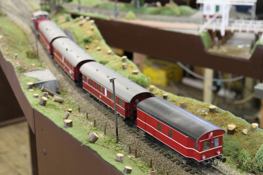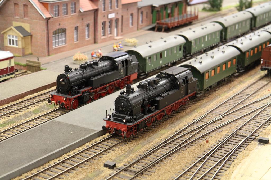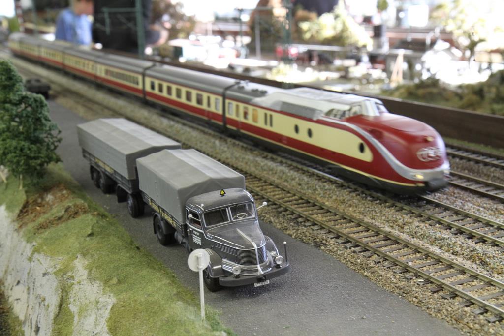 Auch Stammgäste werden nicht müde, den schönen Zügen zuzugucken, die das weitläufige Oval und die sich dahinschlängelnden Nebenstrecken befahren. Viele Spur Nuller kommen, um ihre Selbstbaumodelle, Kleinserienloks und exklusiven Zuggarnituren vorzustellen und rollen zu lassen. Entsprechend ist der Zugbetrieb ein Highlight des Treffens. Viele Foto- und Filmkameras begleiten die Fahrten. Man kann sich bequem mit einer Tasse Kaffee in die Anlage stellen und ein paar Viertelstunden vor sich hin träumen. Die Vereinsdamen kümmern sich um die Verpflegung der Besucher: Deftiger Erbseneintopf, Buletten und Würstchen, und ein reichhaltiges Kuchenangebot liefern die Energie für den anstrengenden Bahnbetrieb.
