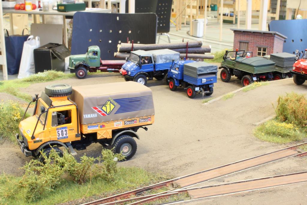 Ein Highlight gab es von Mario Helms zu sehen. Es war die Premiere seines Zweiwege-Unimogs. Das Fahrzeug war mit allen möglichen Funktionen wie Beleuchtung, Blinker, etc. ausgestattet, und natürlich mit ferngesteuertem Auf- und Absenken der Schienenräder. Anschließend fegte der Unimog auf Strasse und Schiene über die Regelspuranlage. Letztes Jahr gab es auch schon jede Menge Bewegung auf den Modulen.