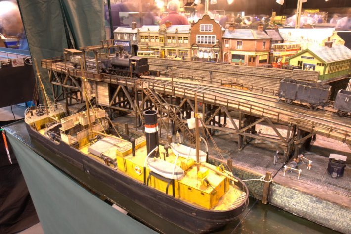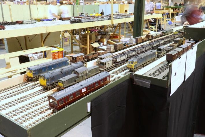 Die Messe ist vergleichbar mit der Veranstaltung in Gießen/Buseck hierzulande, nur viel, viel größer. Es gibt etwa 20 Spur 0 Anlagen zu sehen und um die 100 Aussteller, das Ganze in zwei großen Messehallen.
