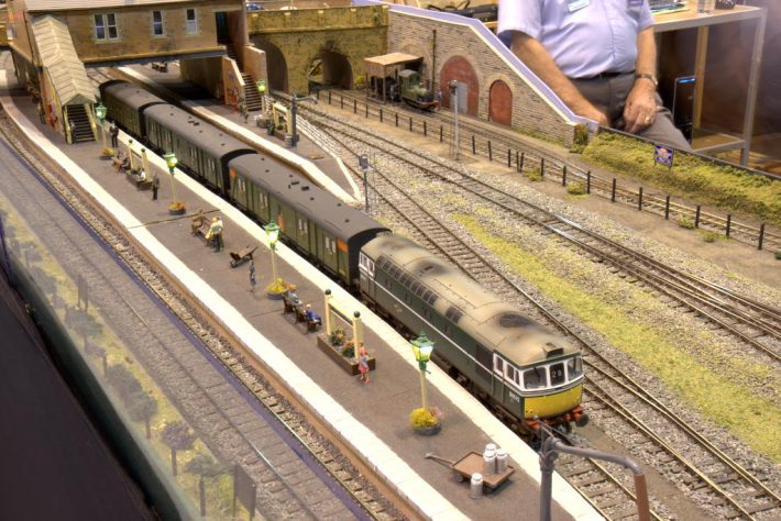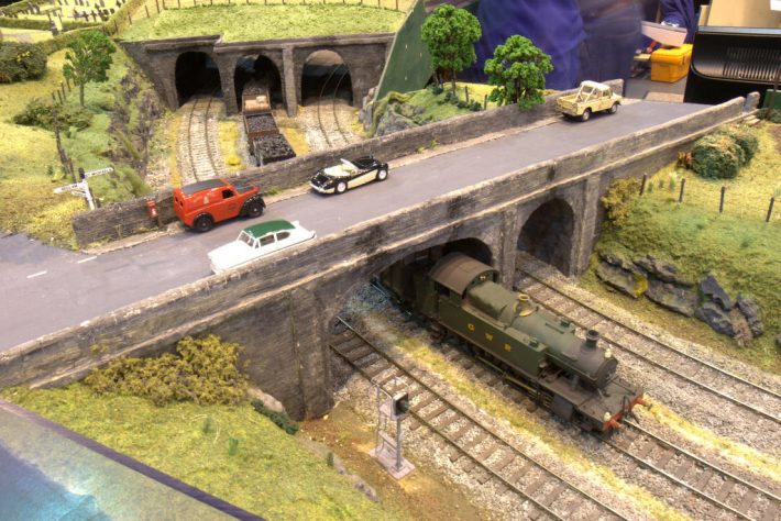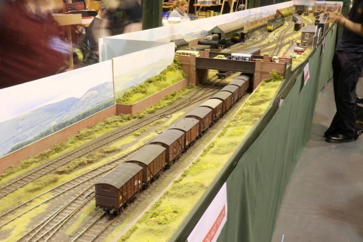 Bemerkenswert sind immer wieder die Aussteller, die ihre großen und kleinen Layouts zeigen und erkennbar den ganzen Tag lang Spaß beim Spielen haben. Es wird gelacht und gescherzt, und einige Teams sind auch konzentriert bei der Arbeit. Es handelt sich fast ausschließlich um Anlagen, die für Ausstellungen geplant oder zumindest dafür ausgerüstet wurden; die meisten haben eigene Beleuchtung und eine Hintergrundkulisse.