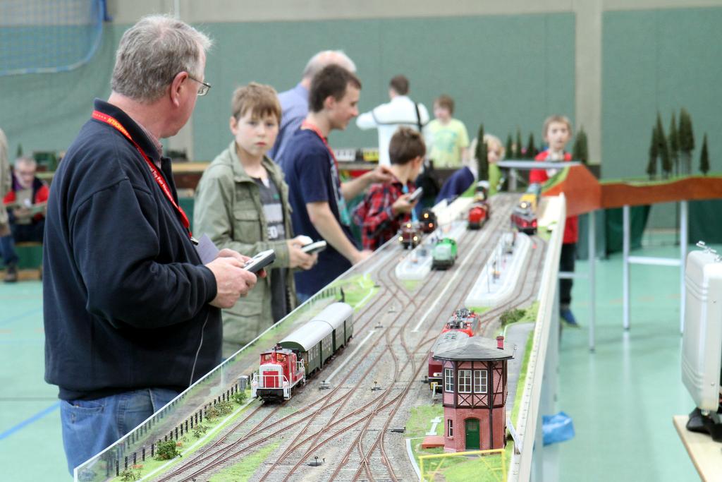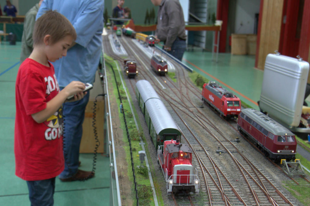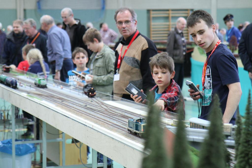 Bemerkenswert: An der Anlage von Peter Harden konnten Kinder den Regler in die Hand nehmen, und die fuhren die Loks und Züge mit großer Aufmerksamkeit und mit Bedacht.