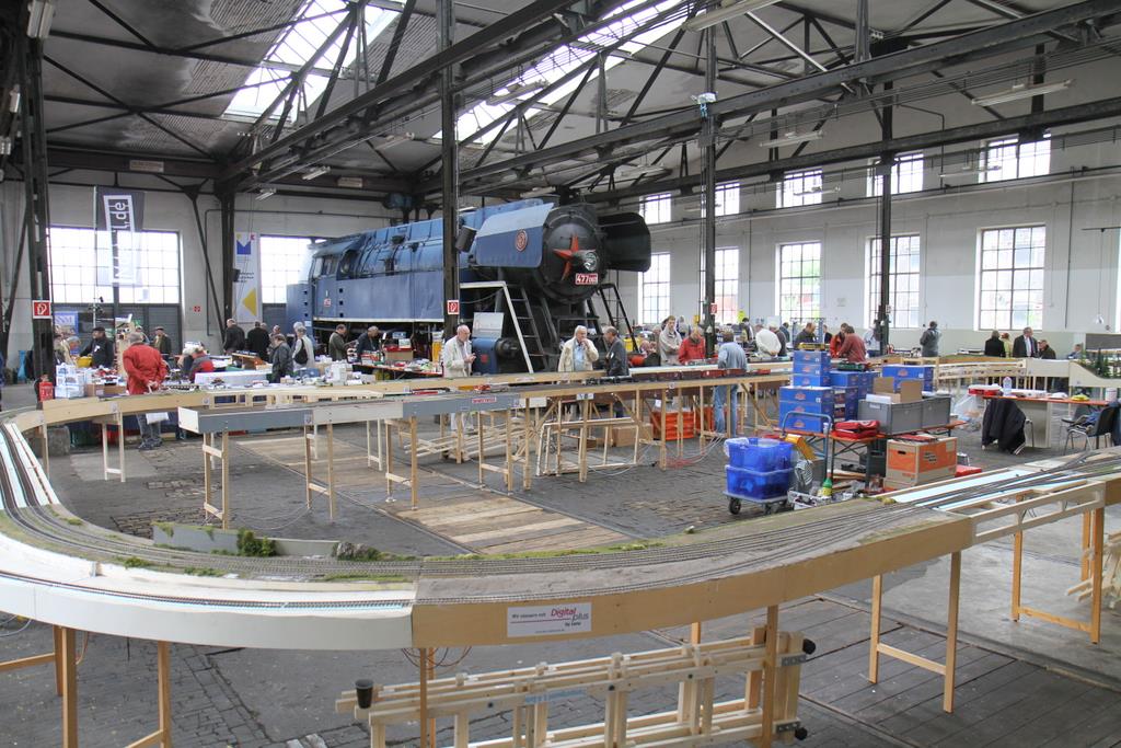Das Ambiente in dem großen ehemaligen Bahnbetriebswerk war ein Highlight für Eisenbahnfreunde. Einige historische Lokomotiven, hauptsächlich E-Loks, waren zu besichtigen, die Kulisse für die Aussteller bildete in der ehemaligen Lokhalle eine imposamte tschechische Tenderdampflokomotive.